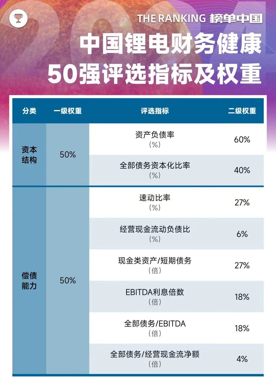 and total debt/operating cash flow net, as well as eight core indicators (Q1 2024), has been compiled into the "Top 50 Financial Health Enterprises of China Lithium Battery (2024)" list.